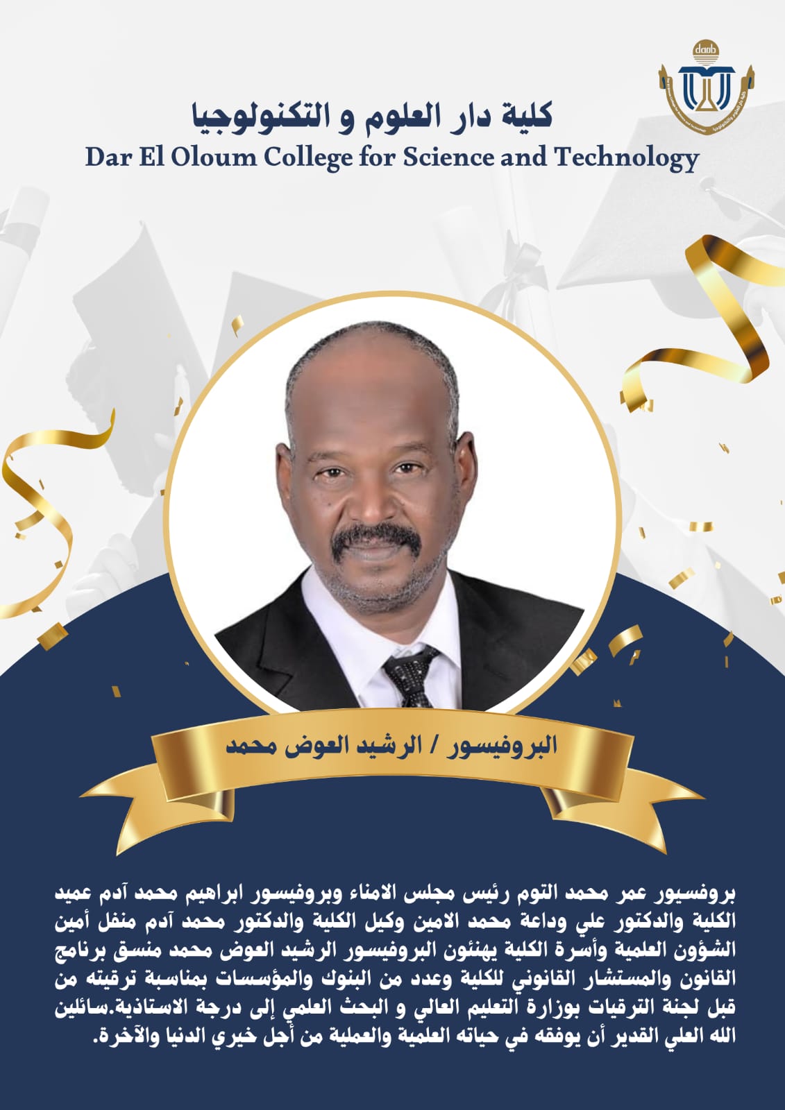 .The College at its headquarters in Lalamab, south of Khartoum, in the morning of Tuesday, February 28, 2023, in the college buildings, organized the annual program to receive new students.   In this reception it honoured Dr.  Mohammad Al-Dhi Hammad, coordinator of the medical laboratories program at the college, and P Sarah Youssef Al-Tayeb, director of the Admissions and Certificates Department at the college, and the exemplary worker Nada Nour Allah Al-Ajab.  The ceremony was addressed by Professor Omar Mohammad Al-Tom Al-Shami, Chairman of the Board of Trustees, Professor Ibrahim Muhammad Adam, Dean of the College, and Professor Ibrahim Adam Ahmed Al-Dakhiri, Director General of the Arab Organization for Agricultural Development  , the guest of honor at the ceremony.  Everyone stressed the importance of these celebrations, which show the college's march, its development, and its partnerships with universities and related institutions.  From inside and outside the country, where with the same ceremony a memorandum of understanding was signed between the College, Al-Jazeera Training Center and Dotech Smart Solutions Company.  All of them praised the continuous development of the College and its strategic plans to continue in excellence.They emphasized the importance of these celebrations and the good impact and memories they leave in the hearts of the students and their families. In addition, the college continues to revive the year of honoring the personalities who contributed to its progress